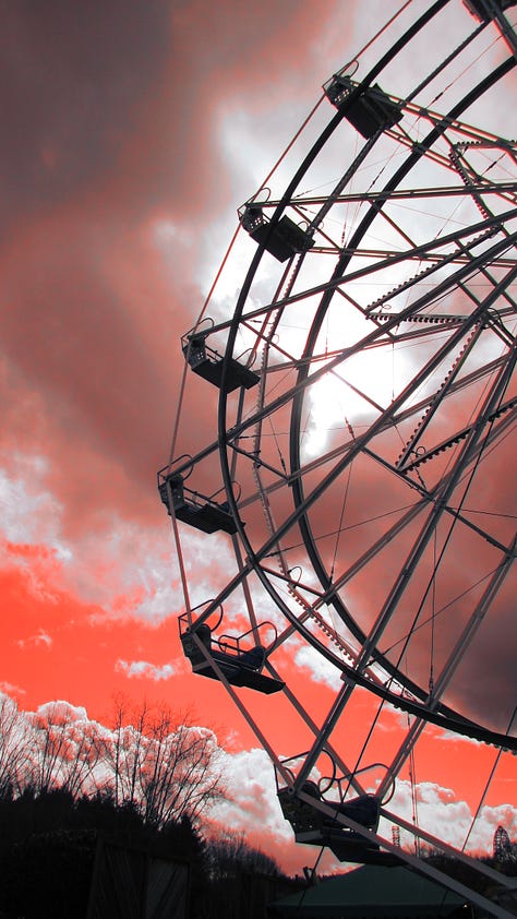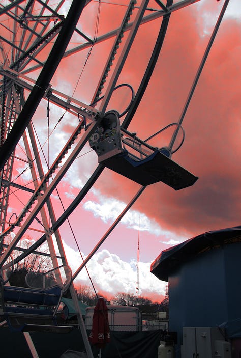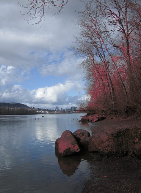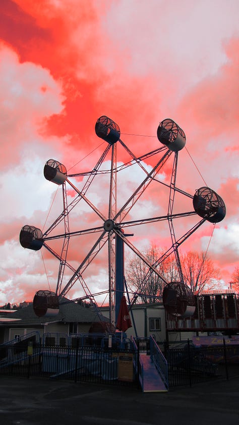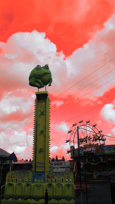 In the early 2000s, several different Canon digicams began shipping with a novelty feature called Color Swap. The feature allows the user to “transform a color specified in the LCD monitor into another”. While I have a vague memory of playing around with novelty features like Color Swap and its sibling Color Accent back when these cameras first came out, probably most people, myself included at best considered it a goofy thing to play around with for a few minutes and then forget about. Fast forward to 2024 when I stumbled upon a reddit post by user u/raakkillie, in the subreddit r/VintageDigitalCameras. They posted a series of really intriguing urban landscapes with red, turquoise and purple skies. It didn’t seem gimmicky at all. I was reminded of LomoChrome Turquoise and Purple or even Kodak’s color infrared film, Aerochrome. I really wanted to try my hand at in camera Color Swapping. After a little digging, I realized that a digicam in my possession, the Canon SD1400 IS, had this feature and after a bit more digging, I figured out how to turn it on and gleefully started playing with the feature.